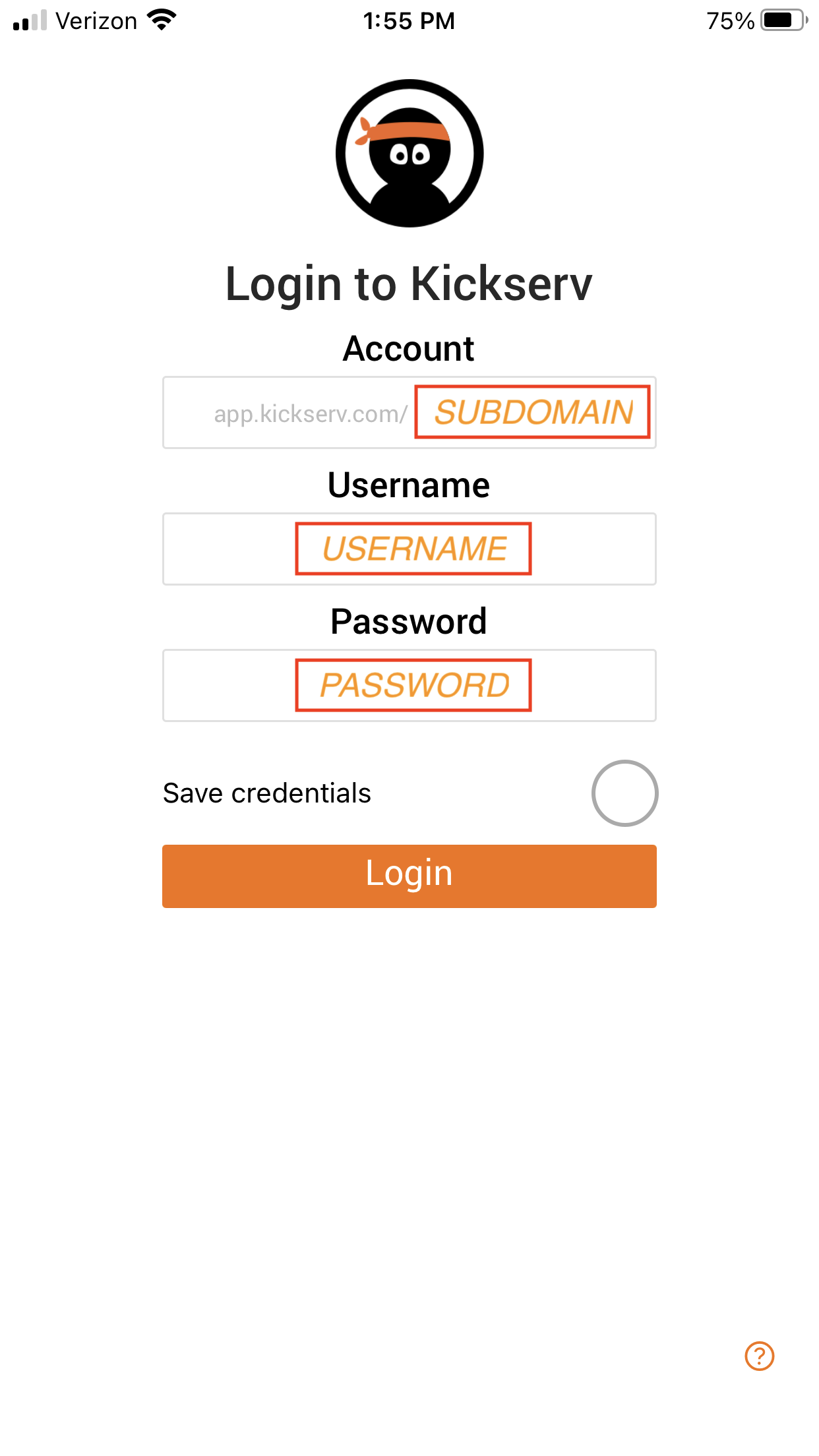- Download the Kickserv mobile app onto your smartphone or tablet using the app store or instructions sent via email or text from your company’s admin.