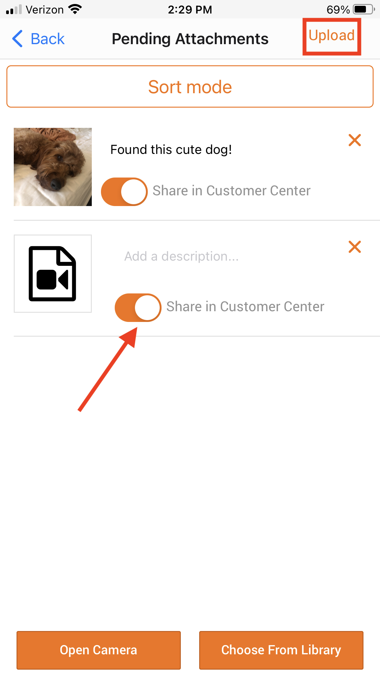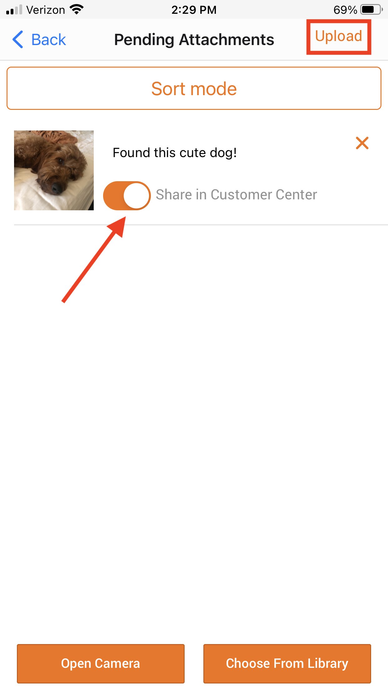 - Toggle the Share in Customer Center button on if you want this photo to be accessible to the customer, too.