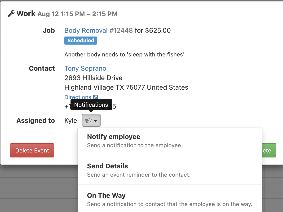 Keep in mind, a job can have multiple events. This goes for "Work" events too.