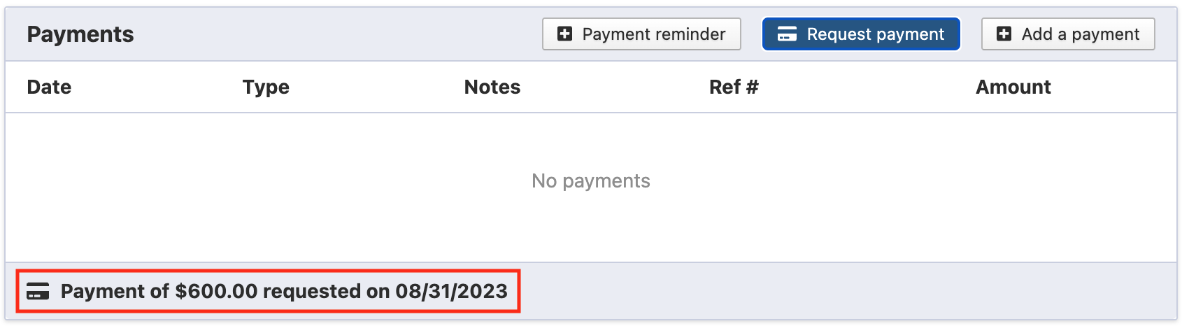 Now in the Payments section for that Job or invoice, you'll see a record for when a payment request was sent.