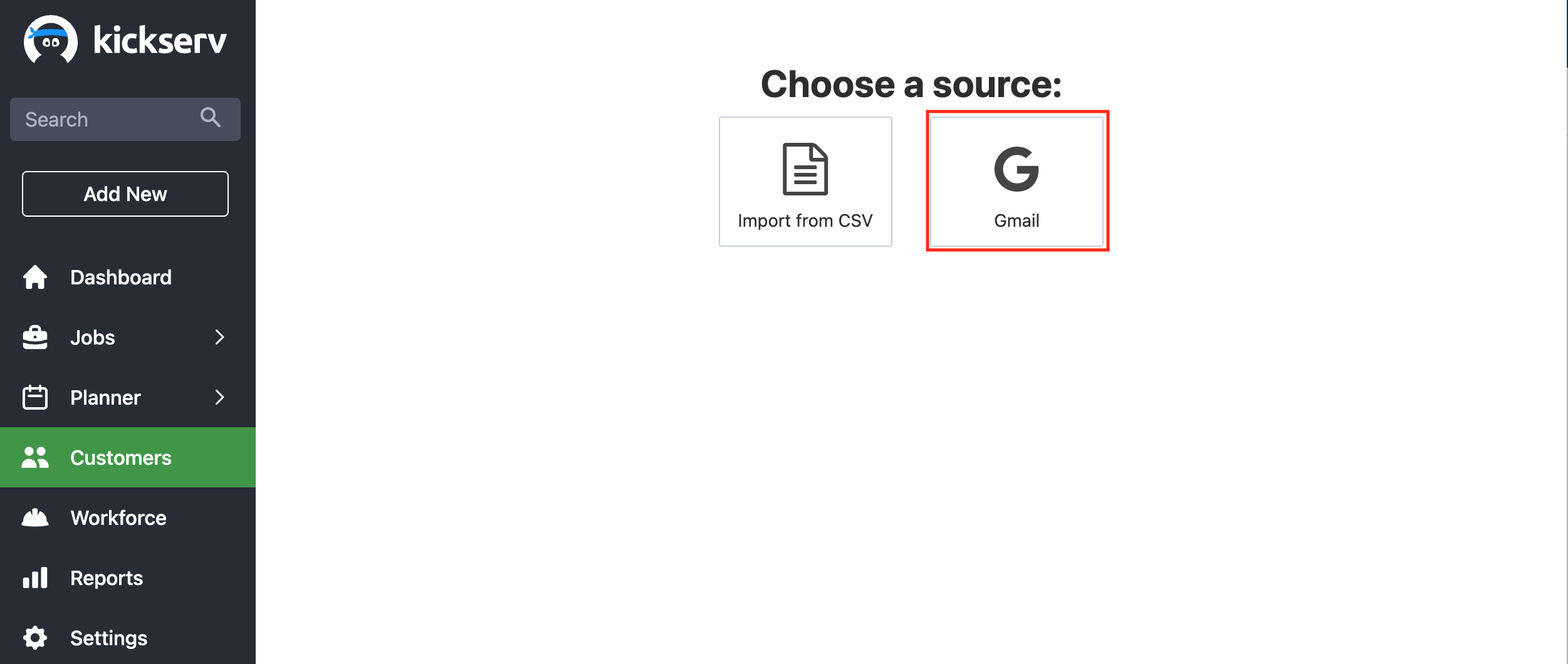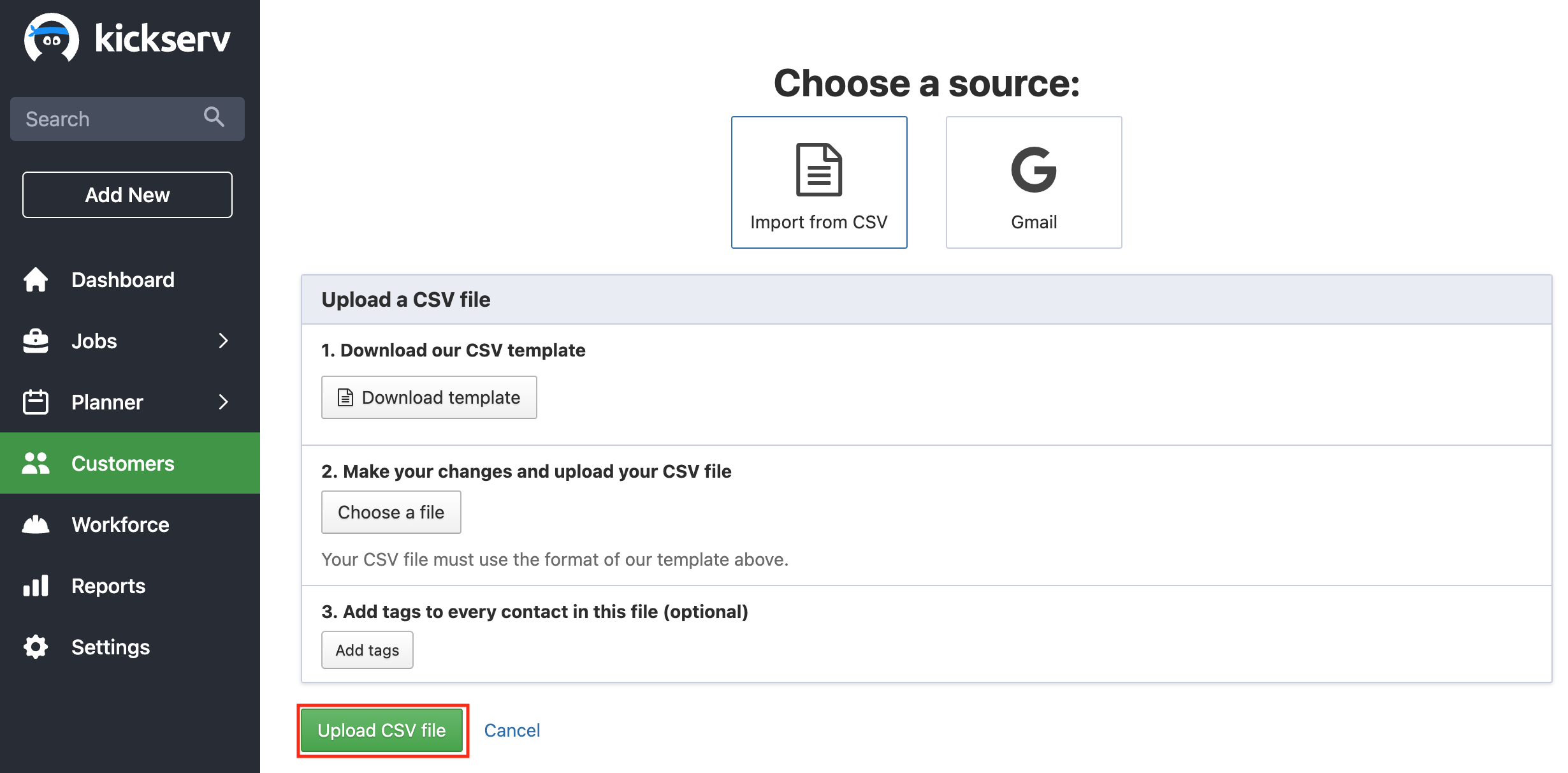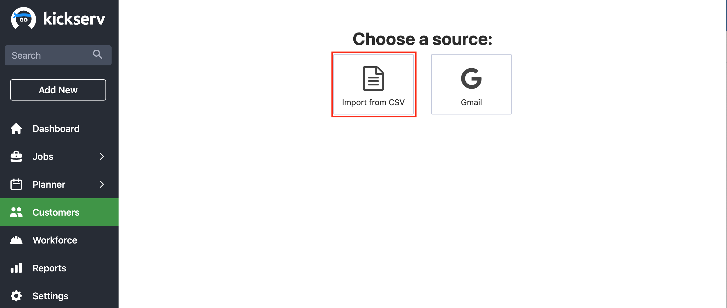 Note: If you integrate with QuickBooks, Kickserv will automatically bring over your customers from QuickBooks.