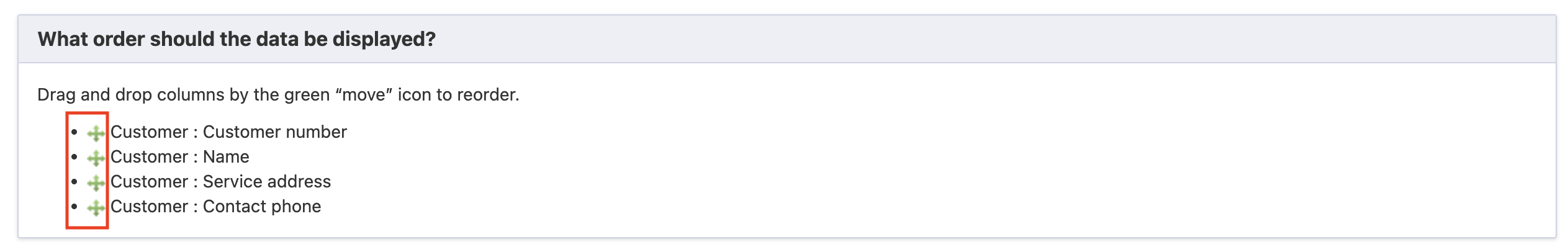 - Drag the fields up and down using the + icon in the What order should the data be displayed? section. This will order the way you'd like the information to appear.